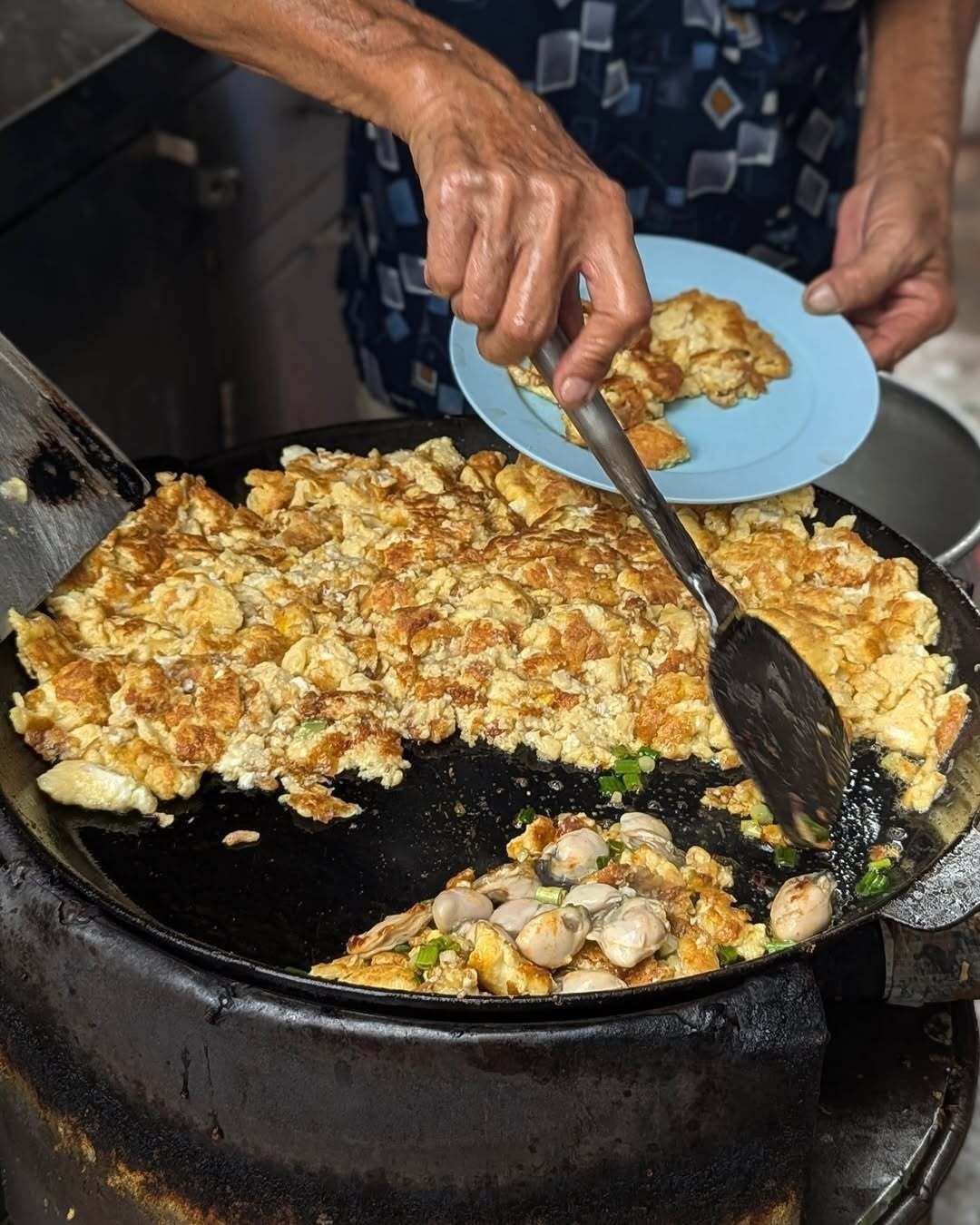 During the cooking process, the eggs are fried on one side whilst remaining soft on the other, creating multiple textures without becoming overly starchy. This nuanced approach ensures that each forkful delivers both the satisfying bite of lightly caramelised egg edges, fresh oysters, and the slight chewiness of starch.