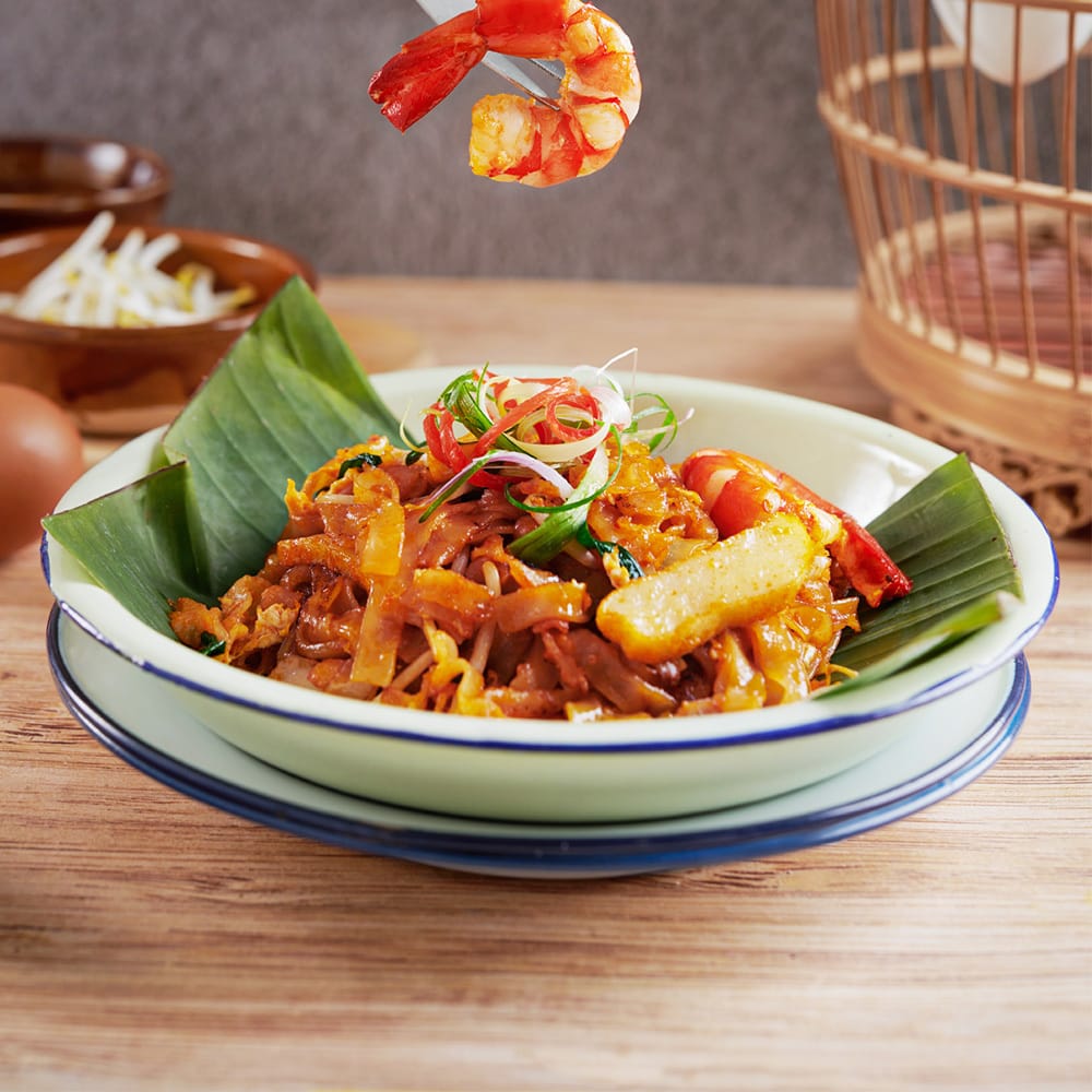 Penang Char Kuay Teow — Flat rice noodles wok-fried with prawns, Chinese sausage, bean sprouts, and eggs in a savory-sweet sauce. The smoky wok hei (breath of the wok) makes this dish a standout favorite among regulars.