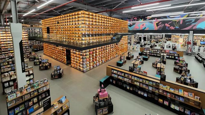 This expansive bookstore features the remarkable 7.5m-tall "Big Box of Knowledge" that emanates a warm orange glow. Books are affordably priced, averaging around RM25 each, covering fiction, health, wellness, and children's literature.