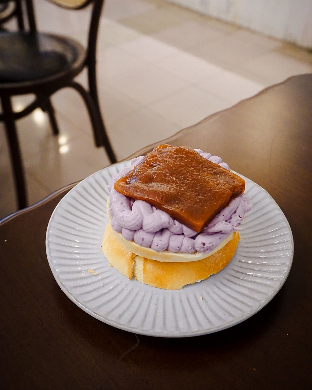 The cafe’s sweet offerings prove equally impressive. The Taro Gao Sweet Bagel (RM22, ~S$6.65) features a texture of chewy nian gao that pairs wonderfully with the smooth, slightly sweet taro, creating a harmonious and unexpected flavour combination that is both comforting and indulgent.