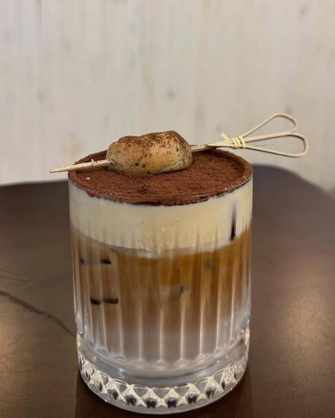 One of the cafe's standout drinks is the Tiramisu Latte, an iced coffee topped with a creamy foam and cocoa powder. This delightful concoction is served with a petite bagel on the side, making it a charming addition to your meal.